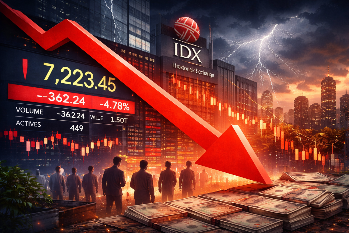 Ulasankaltim.id, Jakarta – Gelombang tekanan kembali mengguncang pasar modal Indonesia pada awal pekan. Sentimen global yang memburuk serta meningkatnya kehati-hatian investor membuat perdagangan saham domestik dibuka dengan koreksi tajam, menandai awal hari yang berat bagi pelaku pasar.