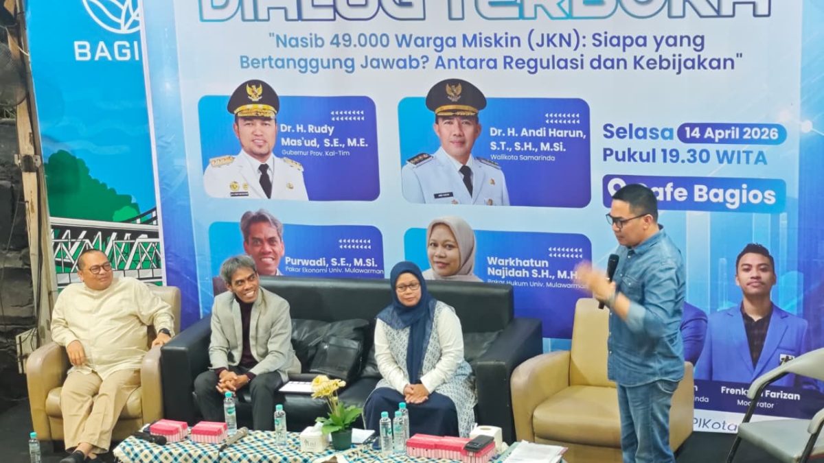 Diskusi bertajuk “Nasib 49.742 Warga Miskin JKN: Siapa yang Bertanggung Jawab? Antara Regulasi dan Kebijakan” digelar pada Selasa (14/4/2026). Forum tersebut menjadi sarana untuk mengurai polemik pengalihan kepesertaan dari Pemerintah Provinsi Kalimantan Timur ke pemerintah kota.
